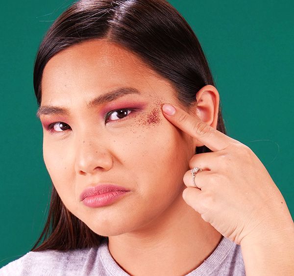 Smokey definitely doesn't mean messy, but a lot of pigmented shadows have the unflattering habit of settling below your eye. Cleansing water (also known as micellar water) works great at removing unwanted shadow. For more, check out these 3 ways to prevent eyeshadow fallout.