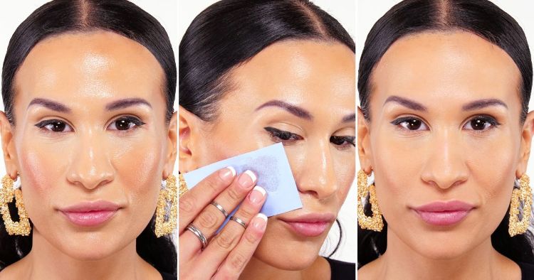 Despite your best efforts, you may still get oily throughout the day. Blotting papers are everything, so carry some in your purse at all times. Tip: As weird as it sounds, toilet seat covers also work because they absorb oil and don't leave cotton fibers behind.