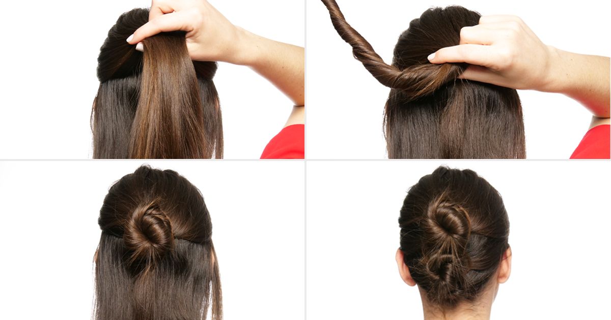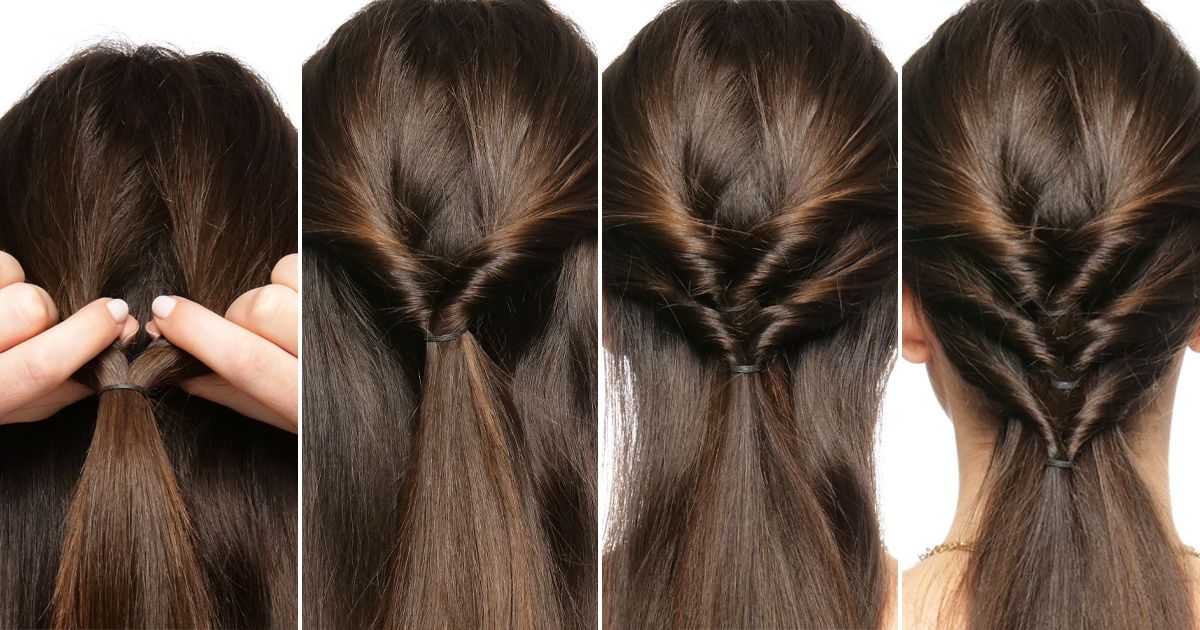 The 1990s may be history, but the Topsy Tail ponytail tool continues to inspire new styles. If you don't have the plastic gadget with the loop on top, your fingers will work just fine. Pull the top portion of your hair back and secure it with an elastic band. Use your fingers to divide the hair in half above the elastic, and then lift the ponytail up and over it to create an inverted twist. Repeat the process two or more times to achieve this impressive chevron design.