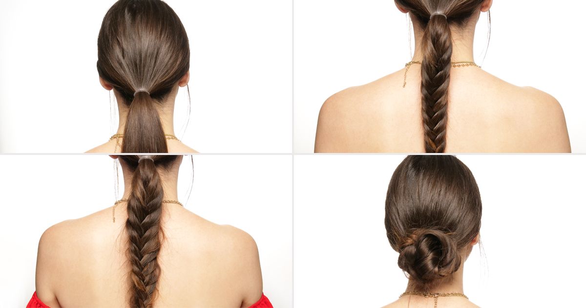 Updos don't have to be complicated to be chic. A low bun can look boring and dated, but this style has classic appeal. Secure your hair at the nape of your neck with an elastic. Braid the ponytail, and then twist it into a low bun. Hold the bun in place with a few hidden bobby pins, and you'll be out the door in no time.