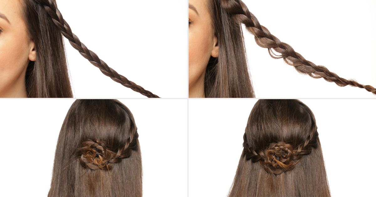 When you're feeling that bohemian vibe, you need a hairstyle to match. This flower braid comes together in a flash. Create a single skinny braid on each side of your head. Secure them in the back with bobby pins. Next, twist both braids into a coil to form the flower. You'll look playful and relaxed instantly.